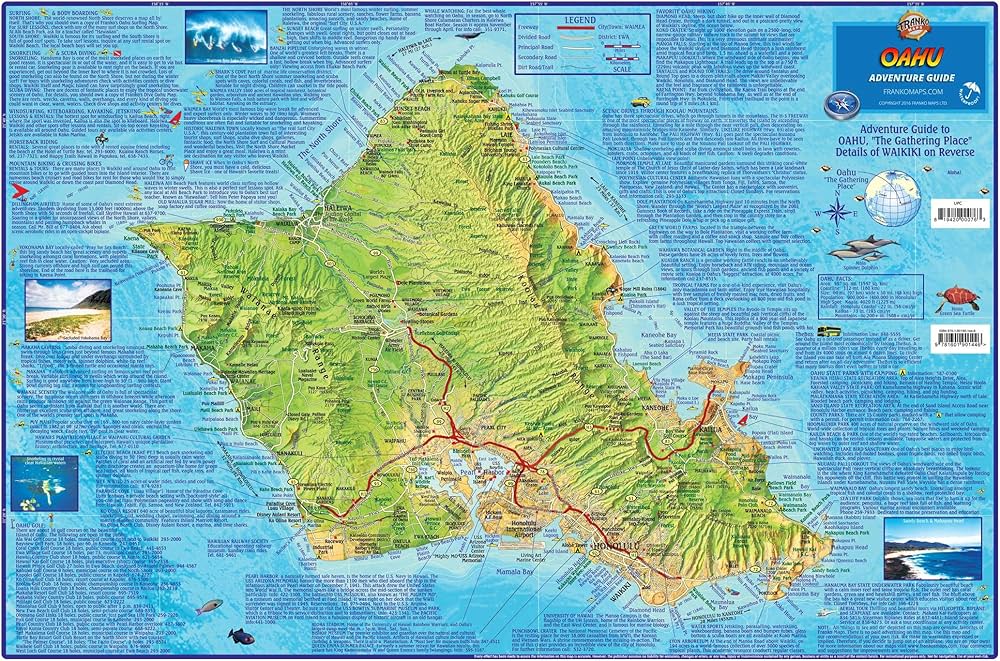 Oahu Hawaii Adventure Map Franko Maps Laminated Poster : Franko