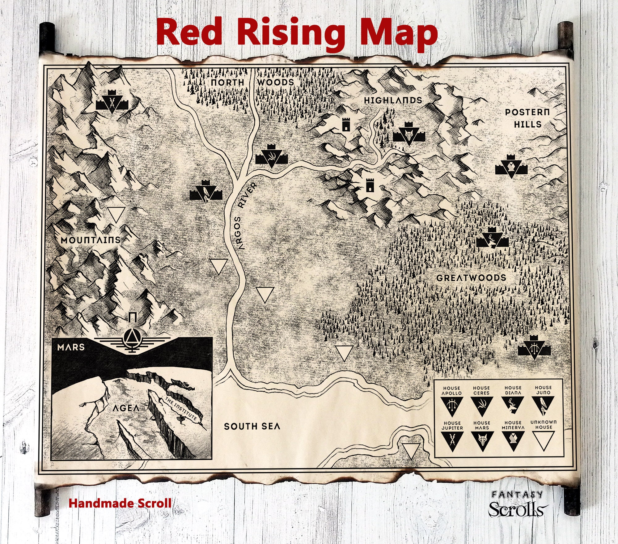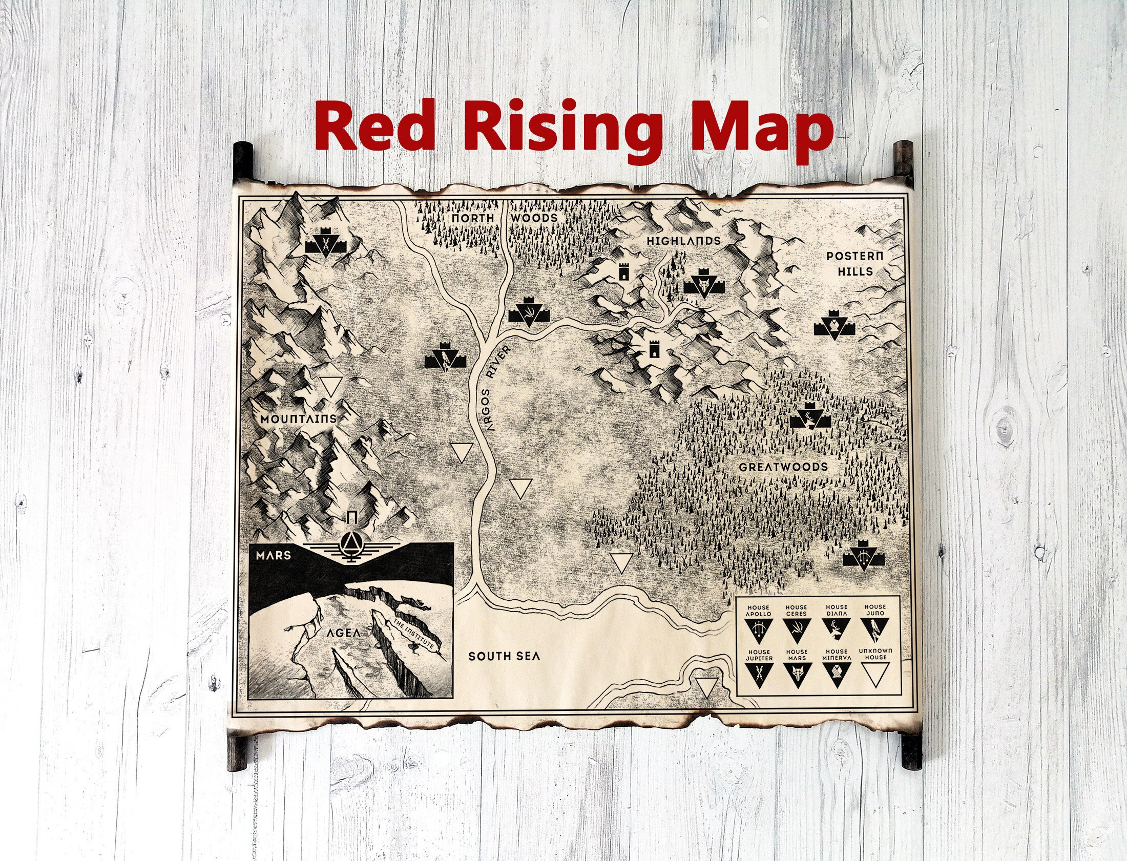 Red Rising Book Map on Handmade Scroll, Red Rising Saga Map